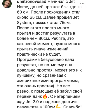 JET- SYSTEM 2 .0 составлена таким образом, чтобы ты увеличил высоту прыжка и забивал свой DUNK за 3 месяца