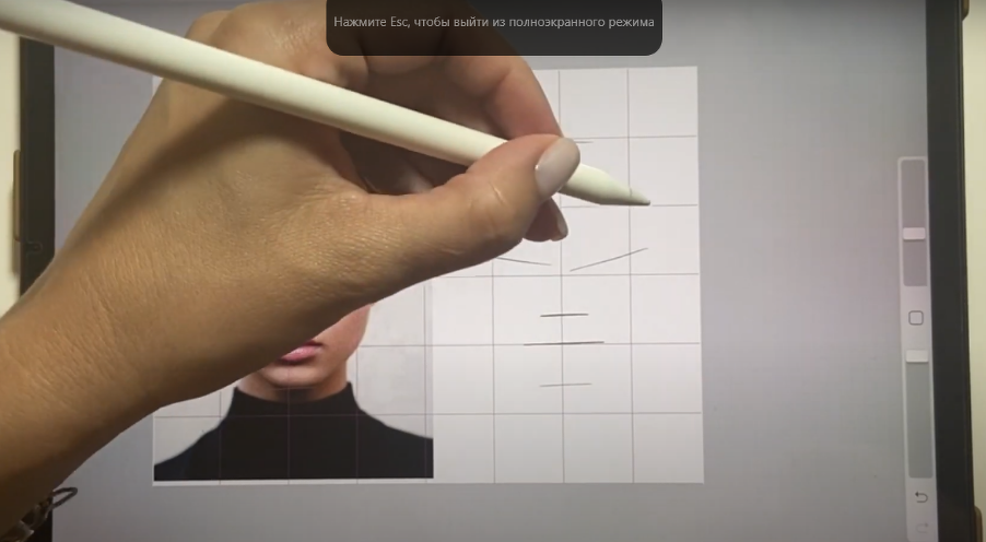 Переходим к наброску. Клетки помогают соблюсти пропорции лица того, кого рисует иллюстратор. Дальнейшая схема соответствует описанной выше для рисования портрета в Procreate из головы.