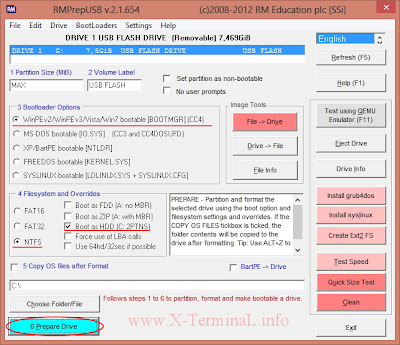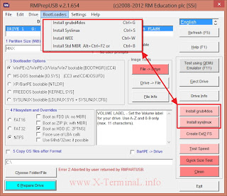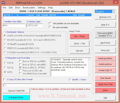 Подробнее о записи загрузчика, на примере GRUB4DOS, описано в материале «GRUB4DOS флешка с помощью RMPrepUSB».