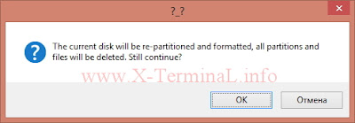 Программа выдаст сообщение о том что на диске будут пересоздан раздел и он будет отформатирован. Соглашаемся нажатием на кнопку OK.