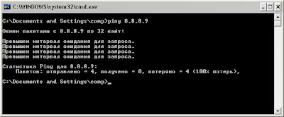 Посмотрим как будет выглядеть результат выполнения команды ping , если проверяемый адрес недоступен. Результат представлен на рисунке.