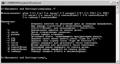У команды ping есть еще много параметров, просмотреть их список и их назначение можно выполнив в командной строке команду ping /?