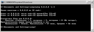 В данном примере вы проверили на доступность сервер с IP адресом 8.8.8.8 ( DNS сервер Google ). Как видно из рисунка утилита ping четыре раза отправляла запросы по 32 байта на указанный вами адрес и четыре раза получила ответ на них (по умолчанию отправляется 4 запроса). Параметр «время» показывает сколько времени прошло с того момента, как был отправлен запрос, до того момента как был получен ответ на него.