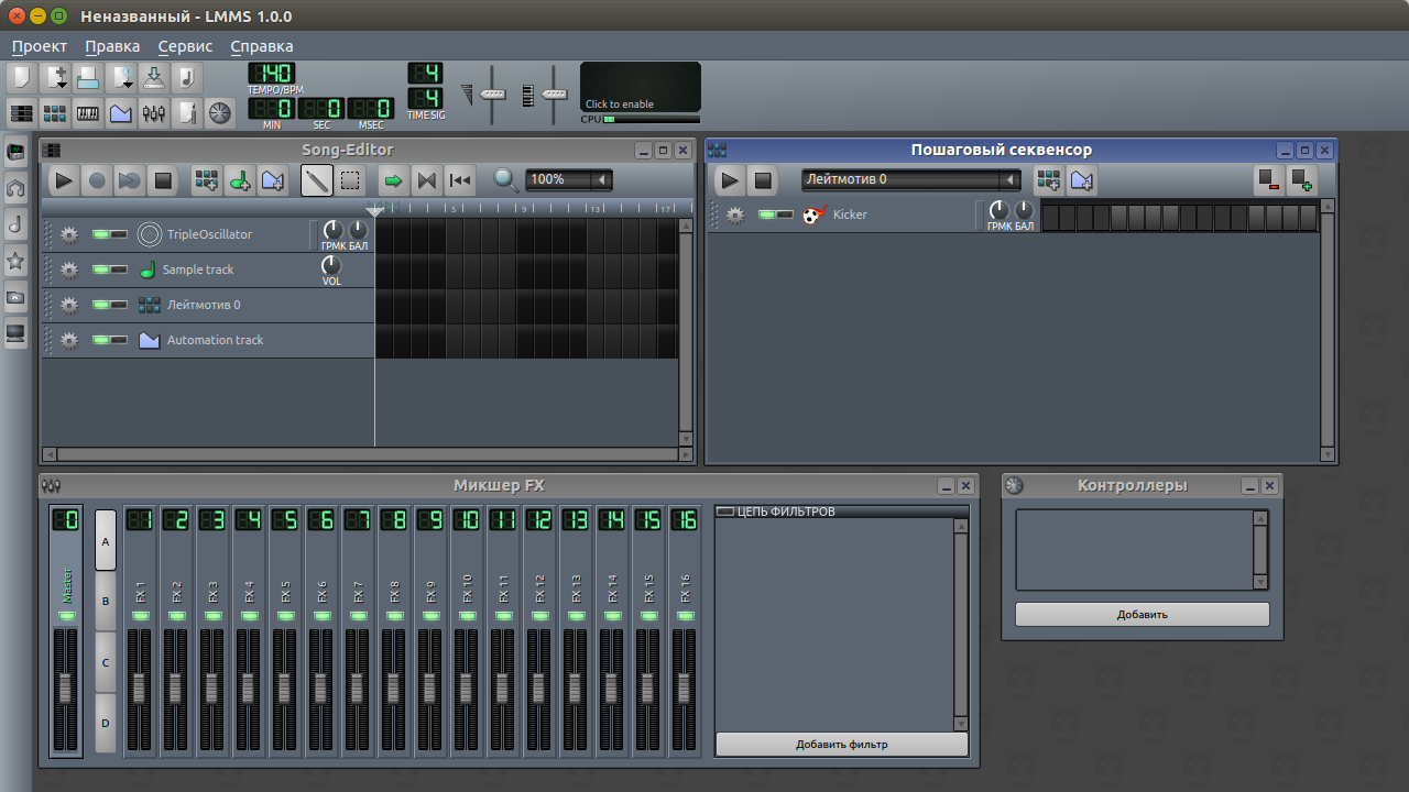 LMMS вобрал возможности трекеров/секвенсоров (pattern-/channel-/ sample-/song-/effect-management) и некоторые из лучших синтезаторов и сэмплеров в современном, лёгком в использовании и удобном графическом пользовательском интерфейсе.