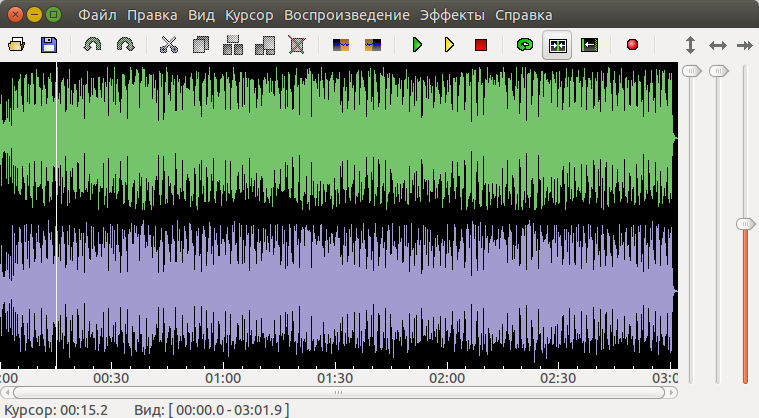 mhWaveEdit — удобная и надёжная программа с графическим интерфейсом для редактирования звуковых файлов. Может работать даже на не очень быстром компьютере. Поддерживает JACK, ALSA, OSS и PulseAudio.