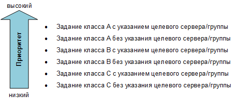 Теперь про классы. Классов заданий в системе 3: A , B и C . Классы имеют разный приоритет. A — самый высокий, C — самый низкий. Имейте в виду, что приоритеты используются только при запуске задания.