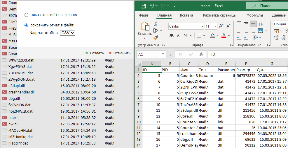 Так же есть опция выгрузки отчёта прямо из HTML файла в браузере в формат CSV.