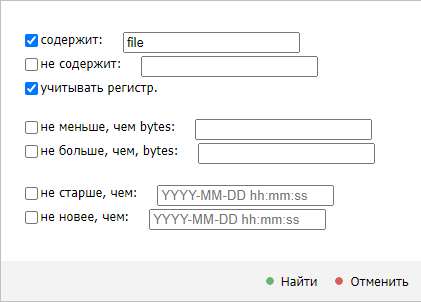 В отчёте доступны гибкие возможности поиска по имени файла, размеру и дате создания.
