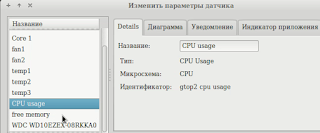 Запуск графического оболочки сенсоров осуществляется командой в терминале: psensor.