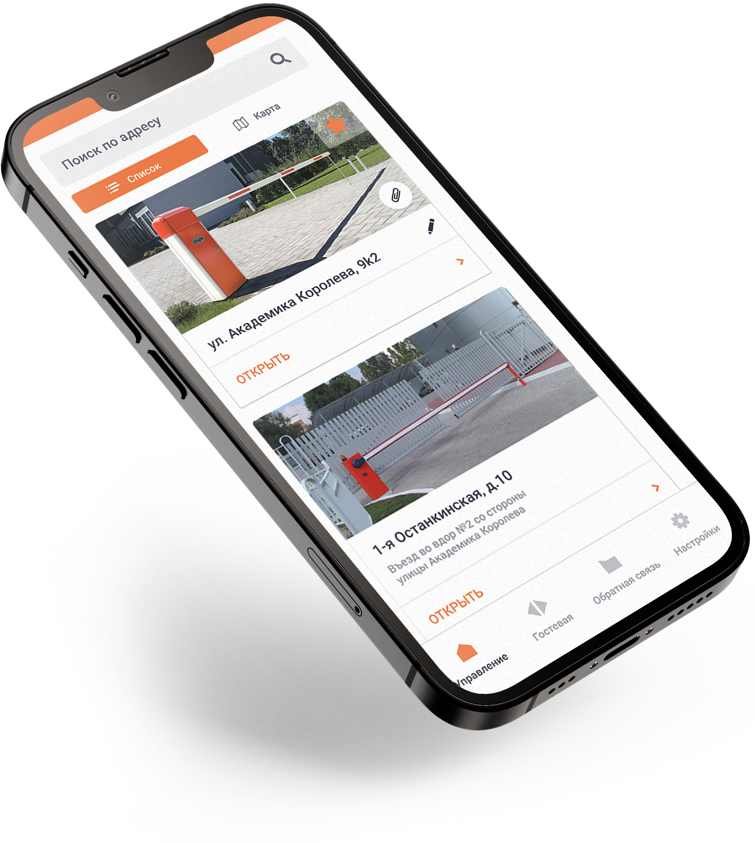 Открыть шлагбаум можно как из списка, так и из просмотра по карте. Если сервер недоступен, то приложение направляет запрос напрямую на шлагбаум через Bluetooth-модуль.