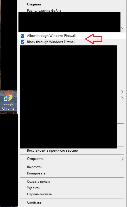 В первом случае, если выбрать «Встроить в Проводник», появится возможность настраивать блокировку программ через интерфейс Проводника Windows. Например, при правом щелчке мыши на рабочем столе по ярлыку Google Chrome, у нас появится возможность заблокировать ему выход в Сеть или разрешить: