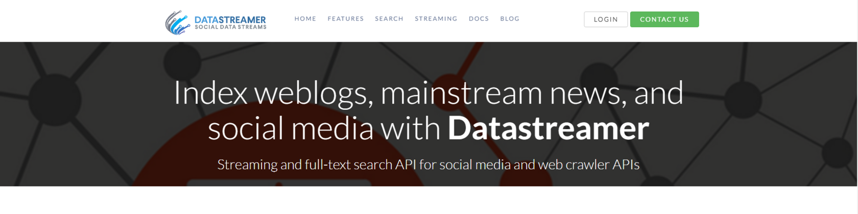 Data Stermer — инструмент помогает вам получать контент из всевозможных социальных сетей. Это позволяет извлекать метаданные с использованием обработки на естественном языке.