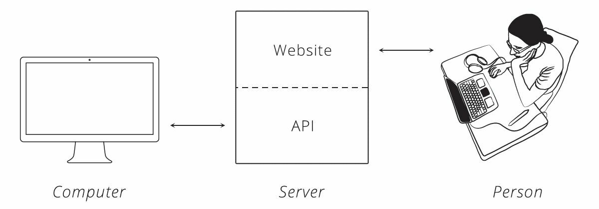 И тут решением выступает API. API — это инструмент, который делает данные веб-сайта удобными для использования компьютером. С его помощью компьютер может просматривать и редактировать данные, точно так же, как человек может загружать страницы и отправлять формы.