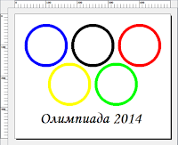 Написать программу, выполнив которую Рисователь построит на листе систему олимпийских колец с надписью «Олимпиада 2014»
