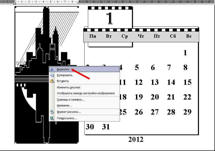 Картинку мы естественно заменим. Для этого щелкаем правой кнопкой мыши по картинке и в выпадающем меню выбираем пункт Вырезать .