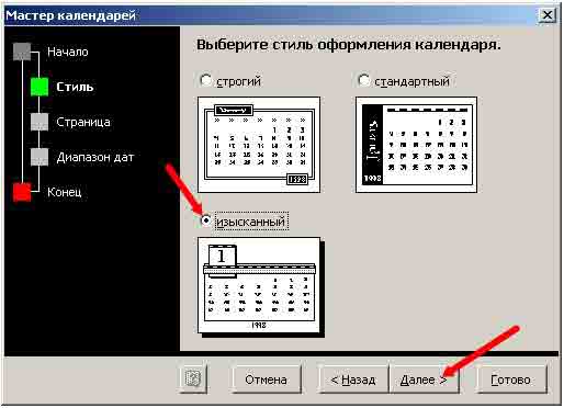 Откроется новое окно Мастера календарей, в котором нам необходимо выбрать стиль будущего календаря (выбираем – Изысканный ).