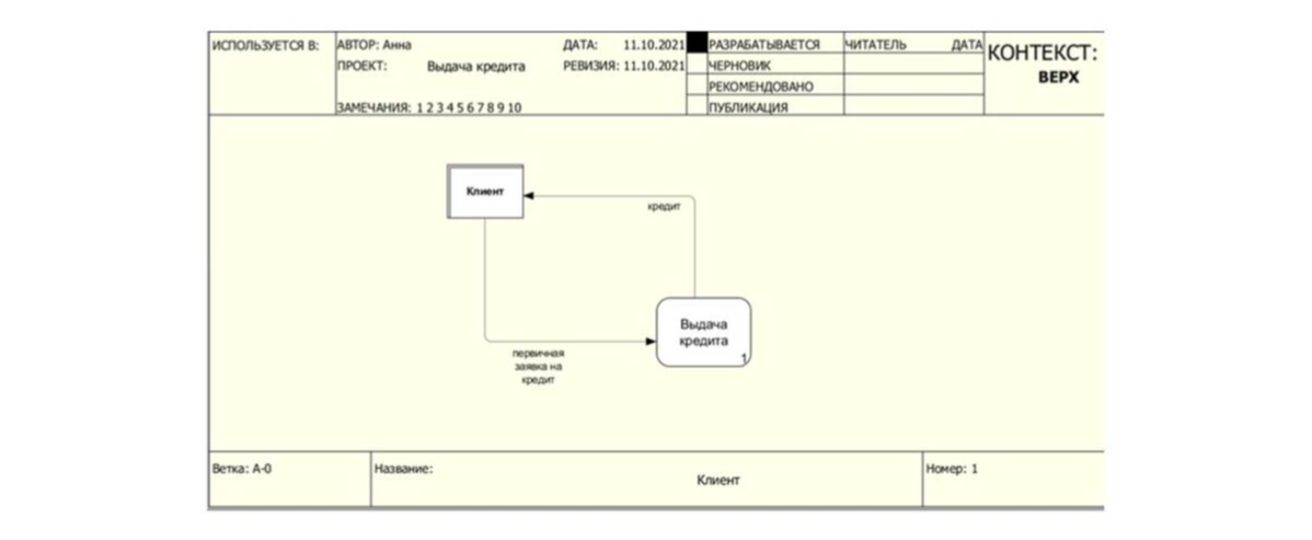 Пример DFD: Выдача кредита. Контекстная диаграмма