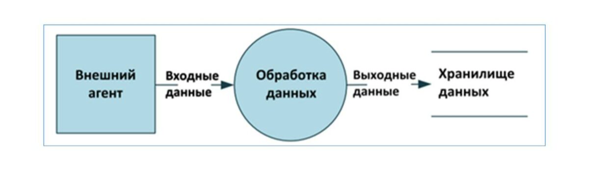 - Процессы — любые процессы, которые ведут к изменению информации и созданию выходных данных. Например, выполнение подсчетов, сортировка данных согласно установленной логике или направление информационного потока в соответствии с бизнес-правилами. Для описания процессов используются краткие метки, например, «Отправка платежа».