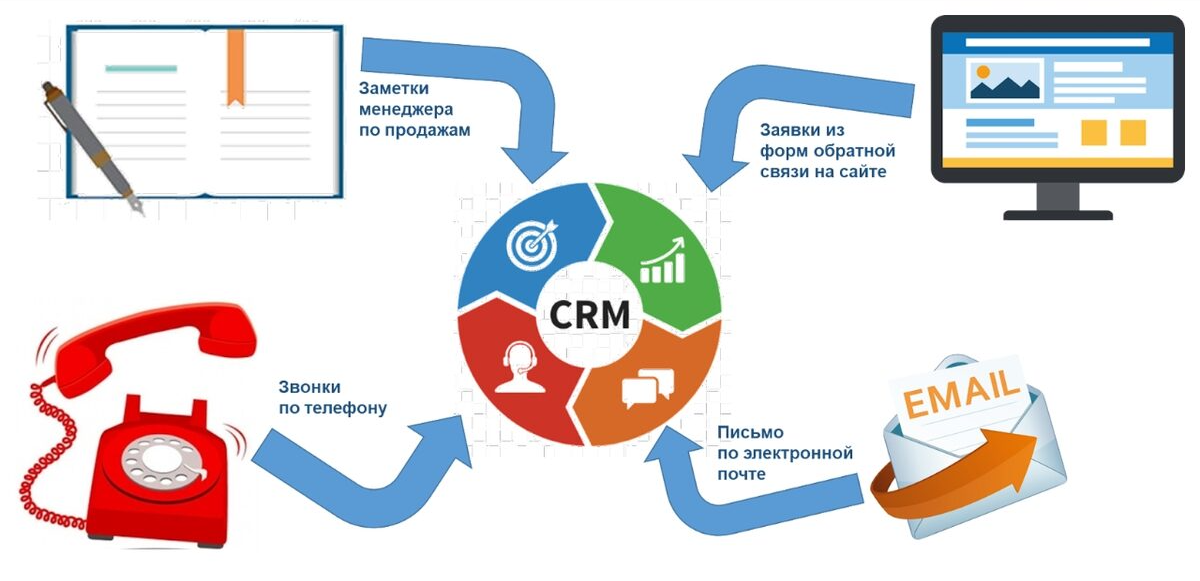 Ещё один пример, с которым сталкивается любой бизнес — это наполнение CRM-системы. Источниками данных могут быть телефонные звонки, заявки из форм обратной связи на сайте компании, письма по электронной почте и даже менеджеров по продажам. Потоки данных сливаются в единое хранилище в виде CRM-системы.