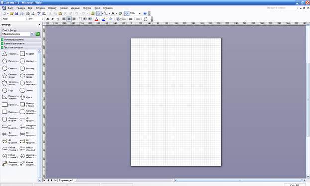 Ø рабочий файл (diagram) – создаваемая Вами схема; сохраняется в файл типа *.vsd.