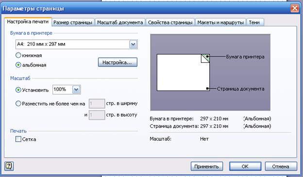 · В меню Файл выберите команду Параметры страницы. В открывшемся диалоговом окне перейдите на вкладку Настройка печати.