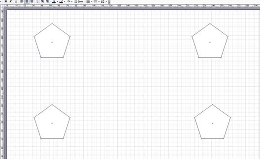 В схеме четыре пятиугольника. Скопируйте его три раза с помощью клавиши Ctrl, сразу ставя в нужное место, ориентируясь на линии сетки и линейки. (См. справку Копирование фигур)