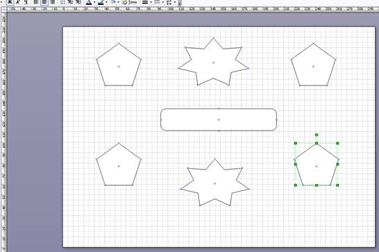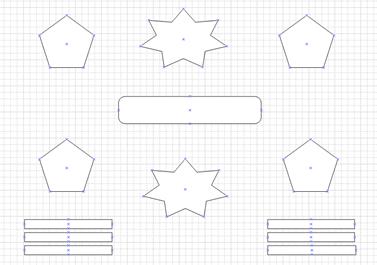 Теперь можно приступить к созданию схемы. На рисунке изображены пятиугольники, прямоугольники, скругленный прямоугольник и звезды.