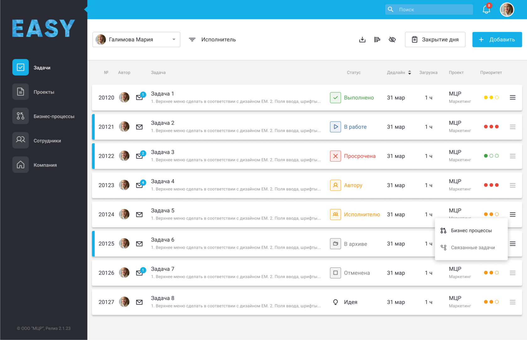 EASY — система управления проектами и задачами с минималистичным интерфейсом и возможностью настроить под себя, подключив дополнительные модули.