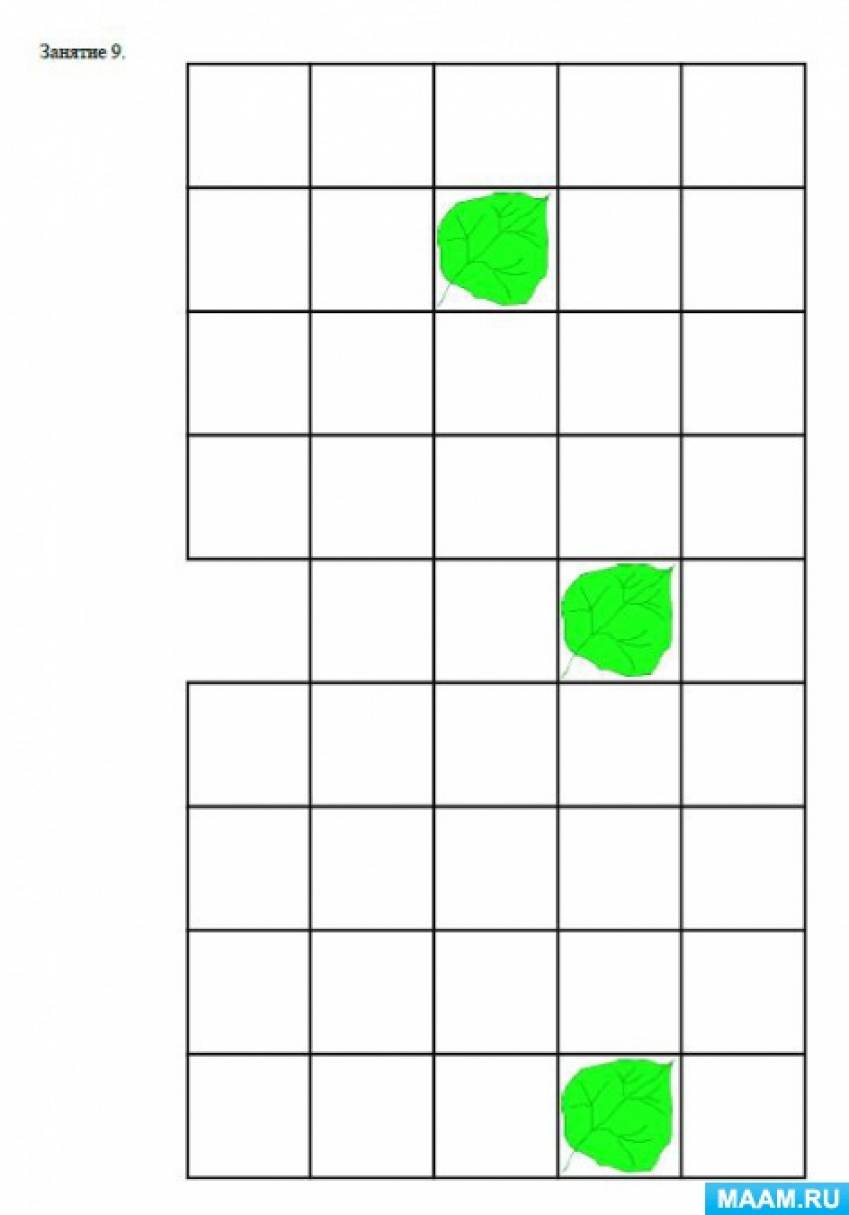 • первую страницу файла, подготовленную заранее учителем (листья ребенку не видны);