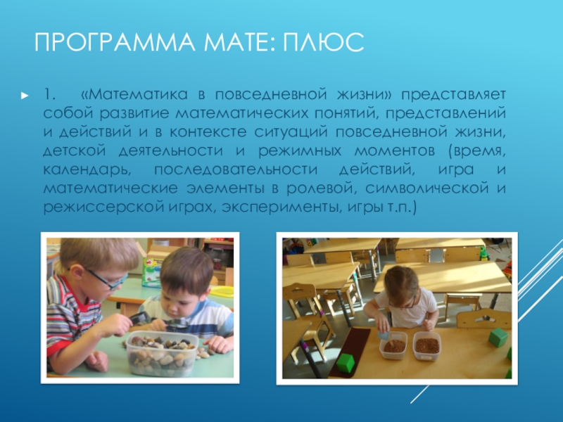Слайд 1Программа математического развития МАТЕ + плюс в МБДОУ №3 «Ромашка» Инновационная площадка