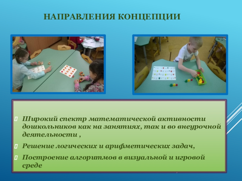 Широкий спектр математической активности дошкольников как на занятиях, так и