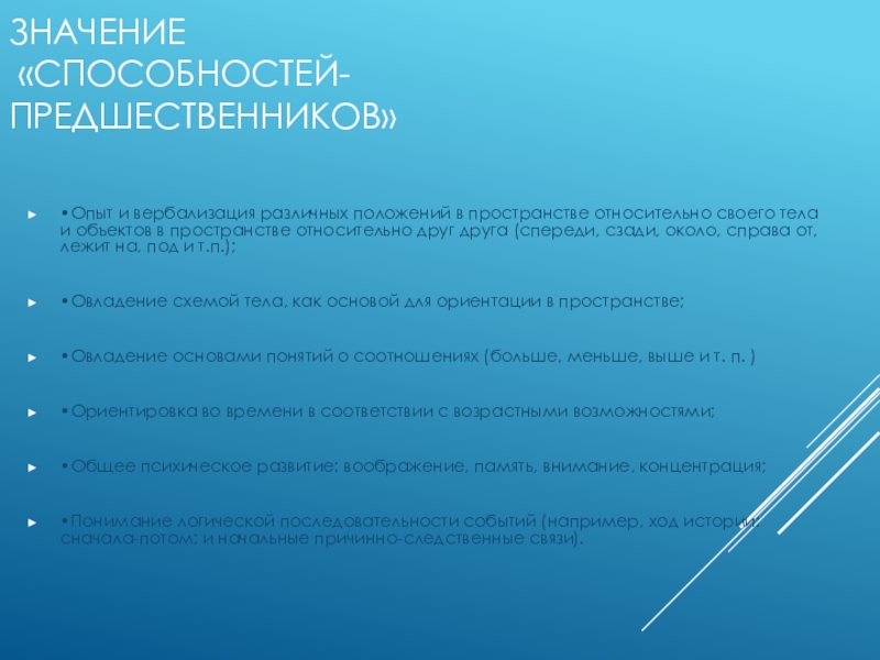 Слайд 14Значение «способностей-предшественников»