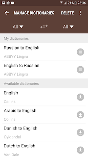- Выбираем и скачиваем словари какие хотим из числа предложенных, например Англо-Русский и Русско-Английский от ABBYY Lingvo.