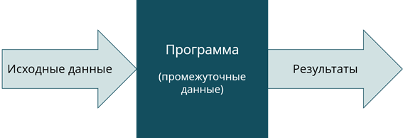 Совокупность величин, с которыми работает компьютер, принято называть данными. По отношению к программе данные делятся на исходные, результаты, (окончательные данные) и промежуточные данные, которые получаются в процессе вычислений (рис. 3.1).