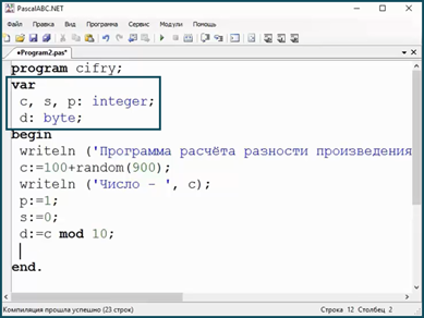 А типы переменных задаются в разделе описания переменных.