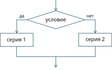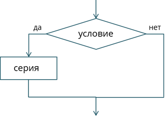 В ней, если условие выполняется, управление передаётся серии, а если нет, то программа переходит к выполнению остальных команд, следующих за ветвлением.
