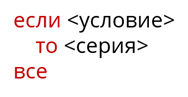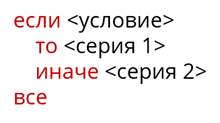 Если заданное условие выполняется, то управление передаётся серии 1, а если нет – серии 2. Полное ветвление, записанное на алгоритмическом языке: