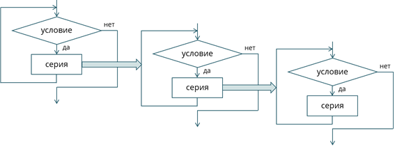 Соединять базовые структуры можно двумя способами: последовательным и вложенным.