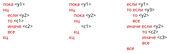 Всё это вы можете увидеть при записи приведённых выше блок-схем на алгоритмическом языке.