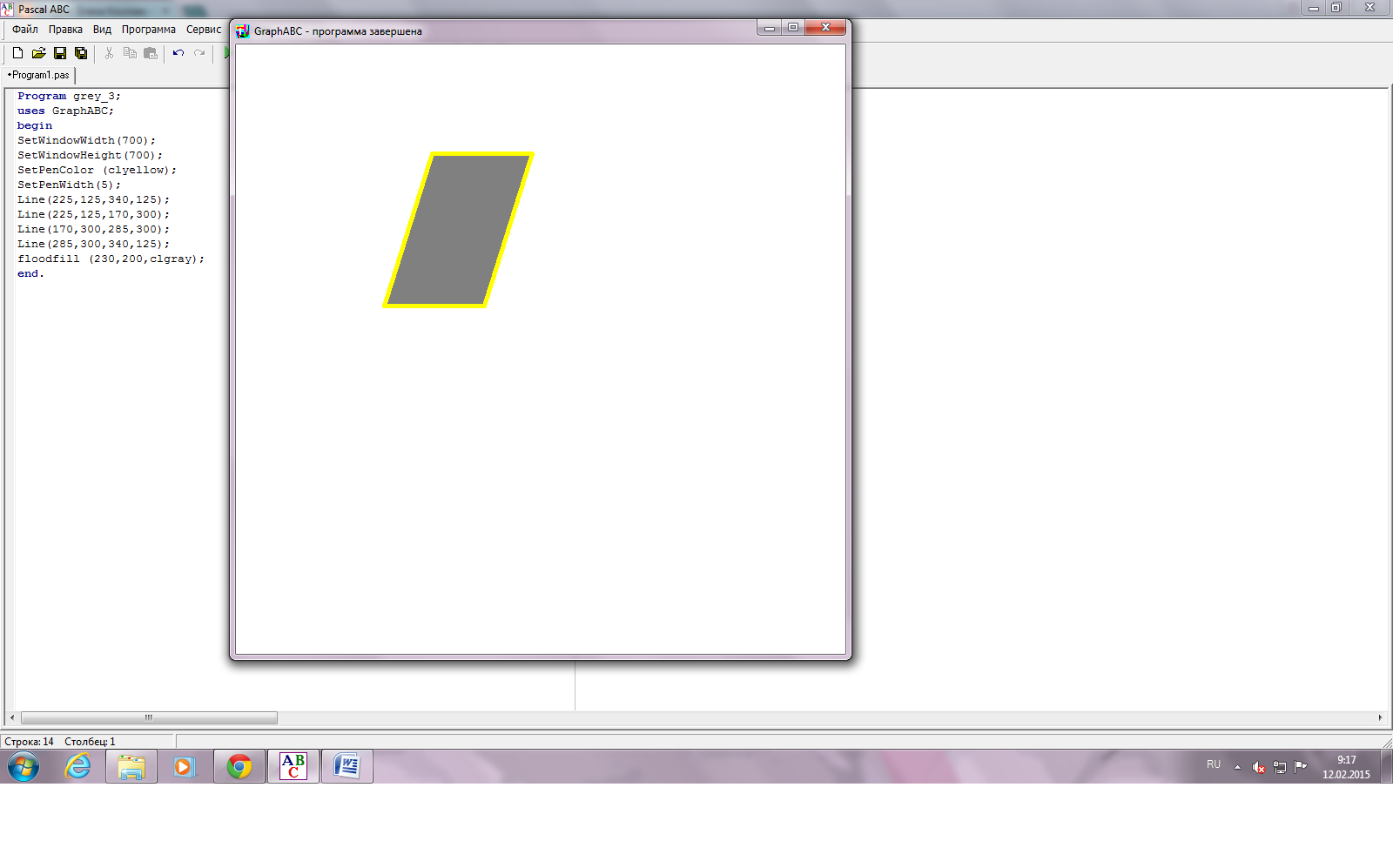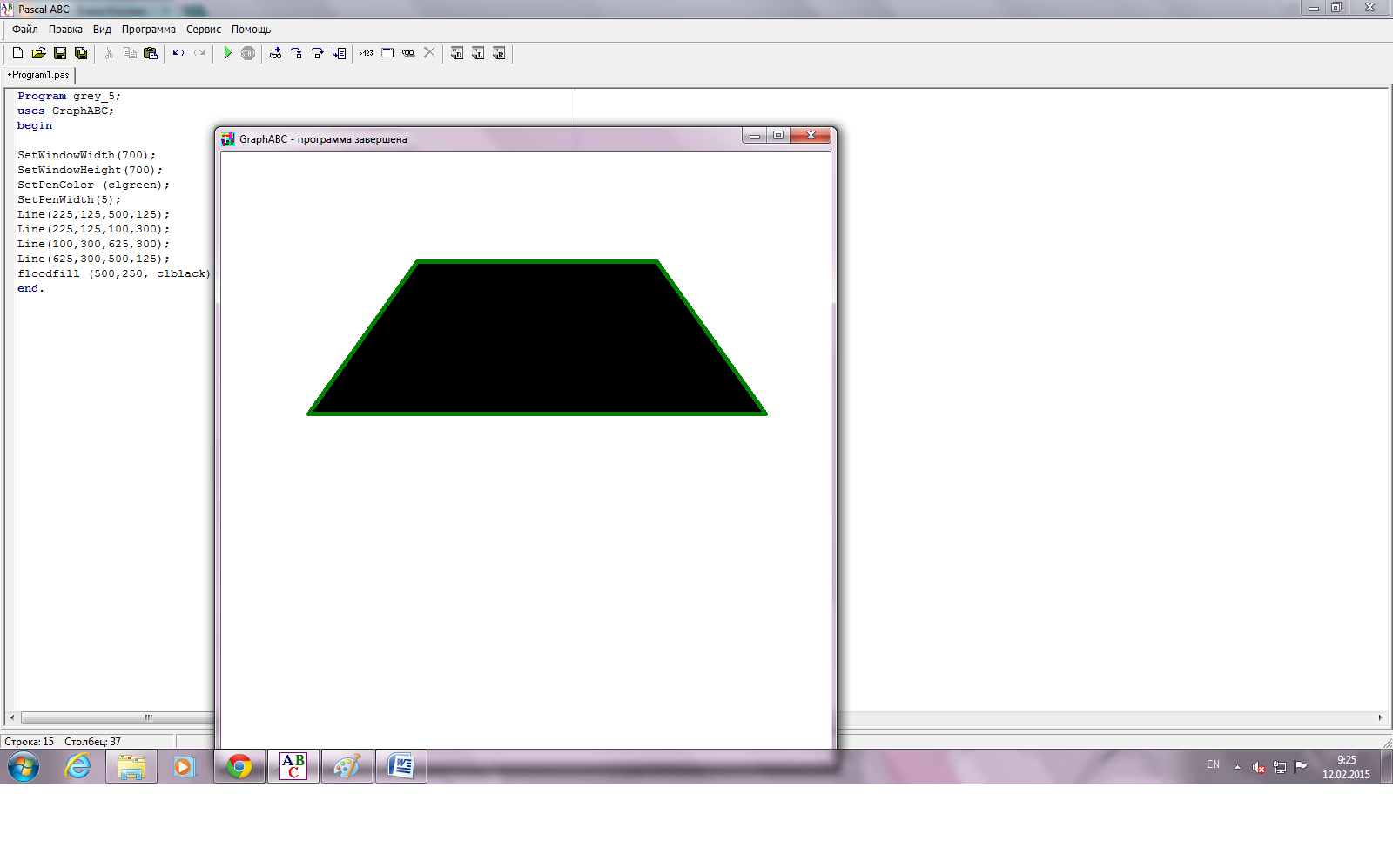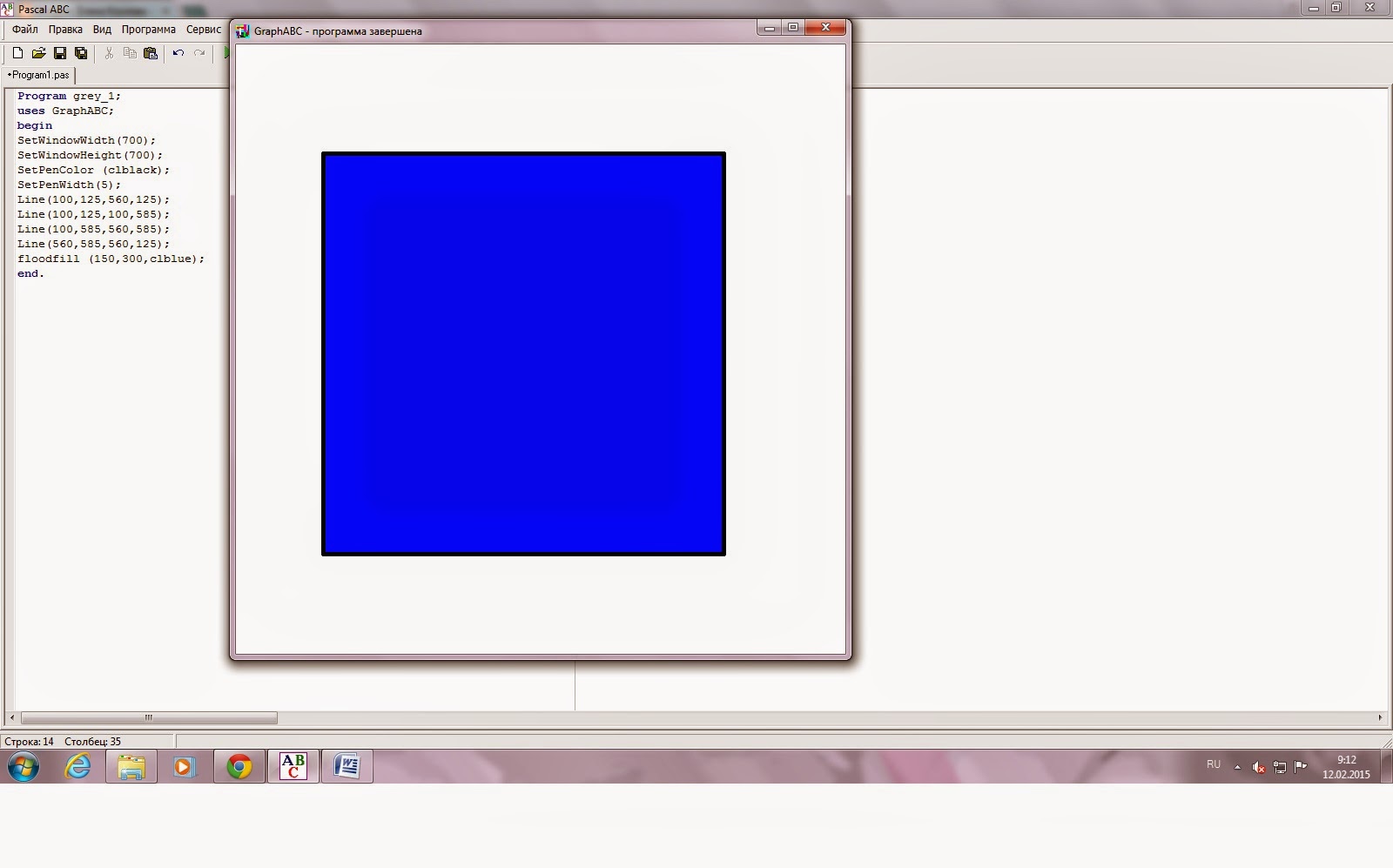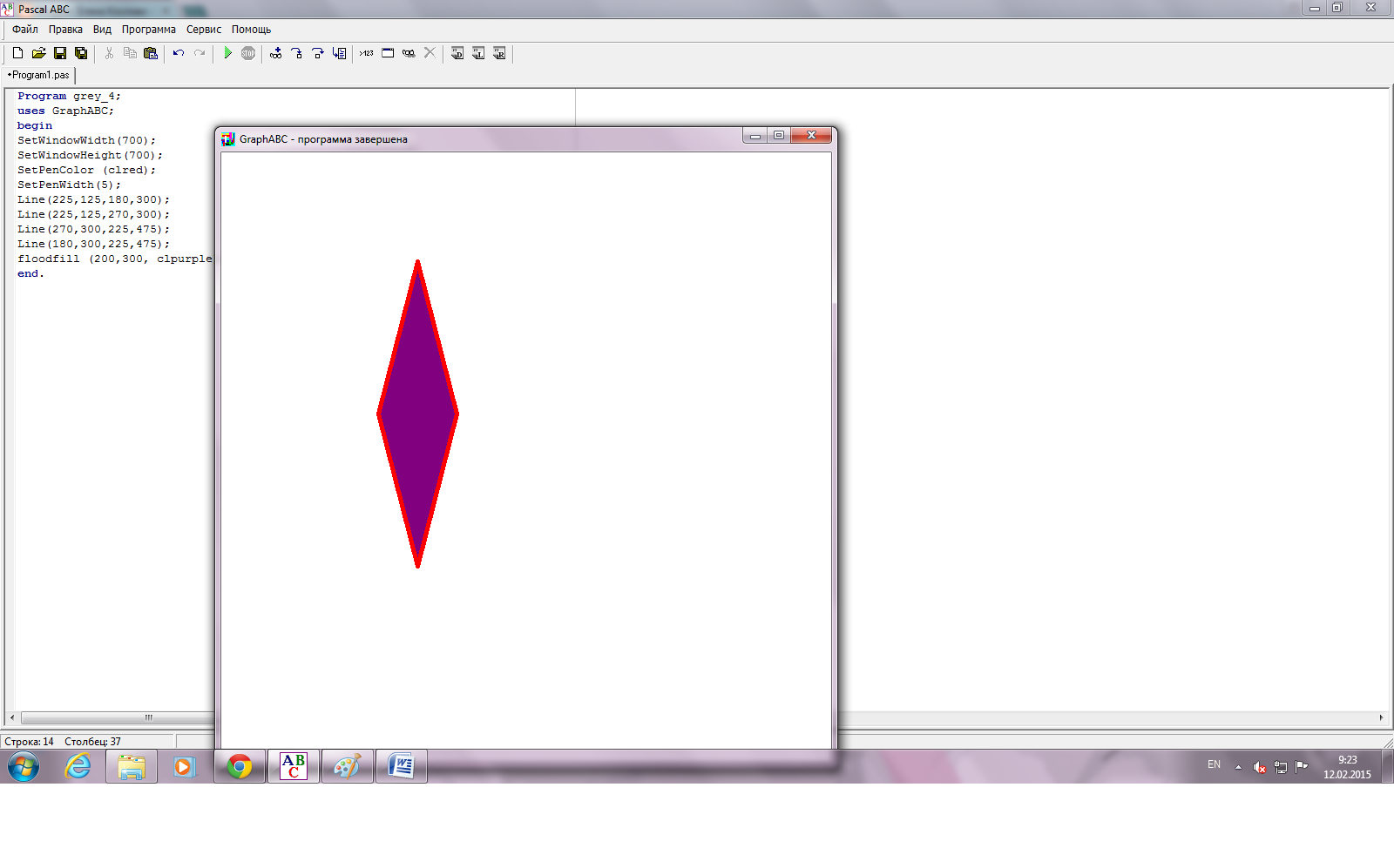 writeln(‘Vvedite koordinaty levogo kolca, x=[50..300], y=[50..350]:’);