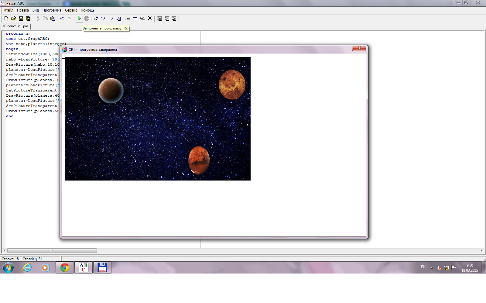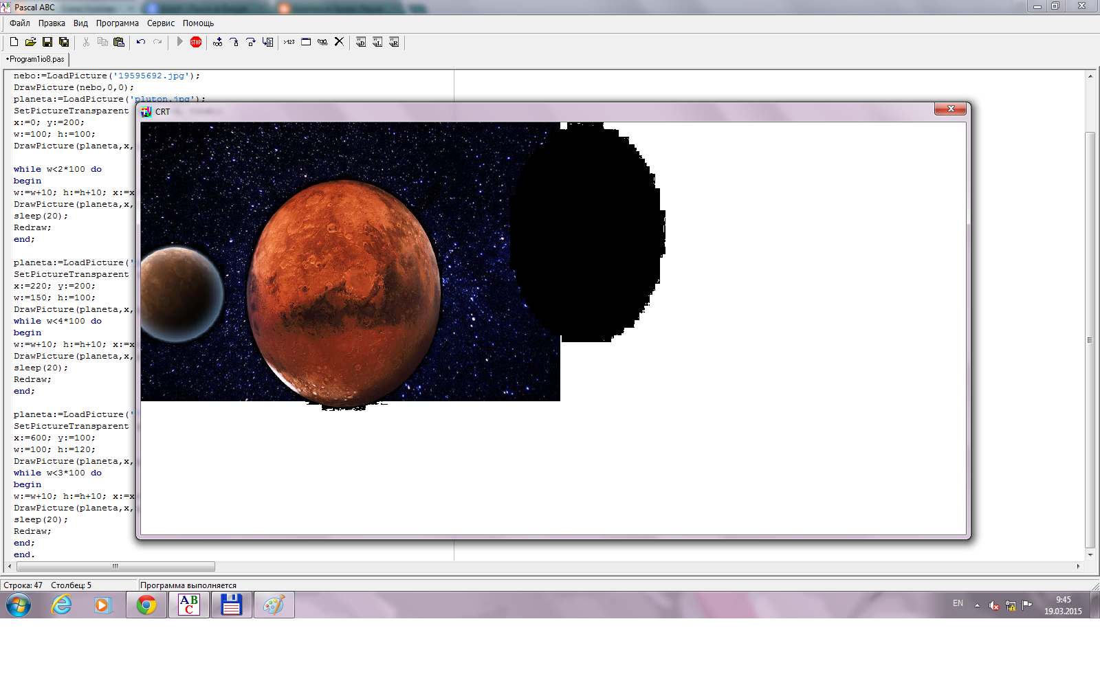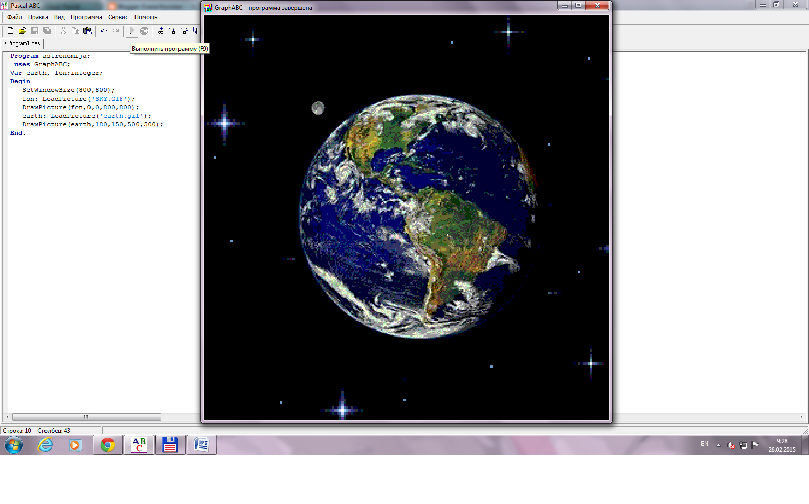 *Составьте программу, которая загружает из файлов и выводит на экран изображение нескольких планет Солнечной системы на фоне звездного неба.