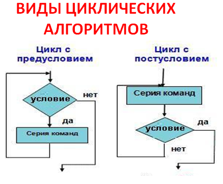Алгоритм, содержащий циклы, называется циклическим алгоритмом, или алгоритмом с повторениями .