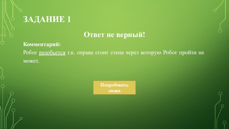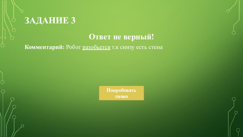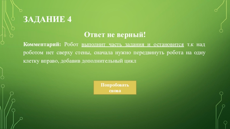 Комментарий: Робот выполнит часть задания и остановится т.к