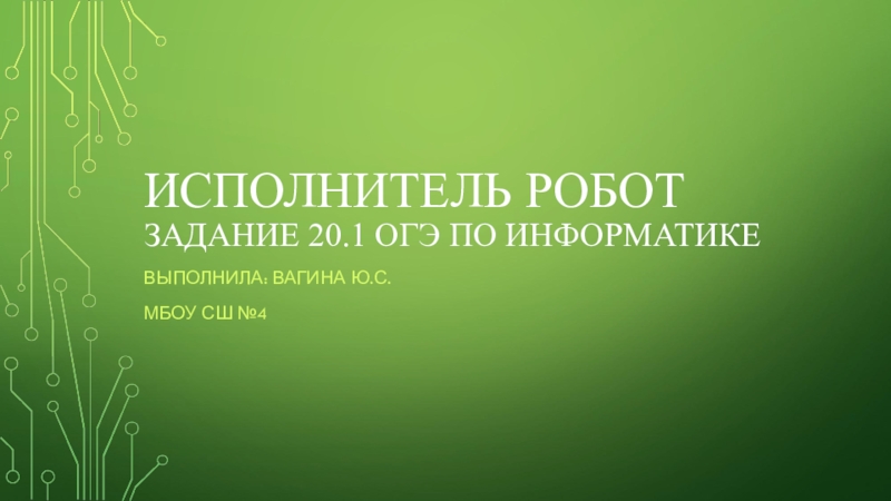 Слайд 1ИСПОЛНИТЕЛЬ РОБОТ ЗАДАНИЕ 20.1 ОГЭ ПО ИНФОРМАТИКЕ