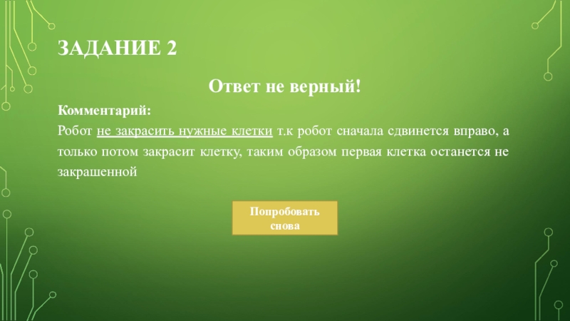 Робот не закрасить нужные клетки т.к робот сначала сдвинется