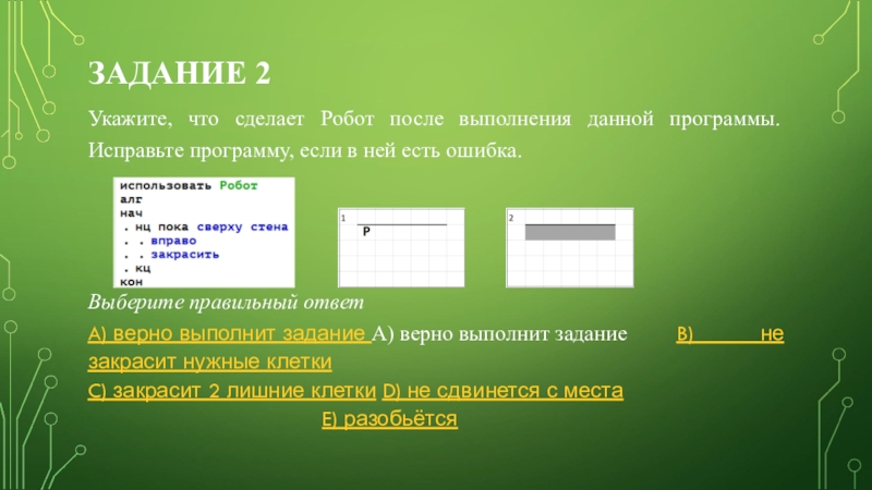 C) закрасит 2 лишние клетки D) не сдвинется с места