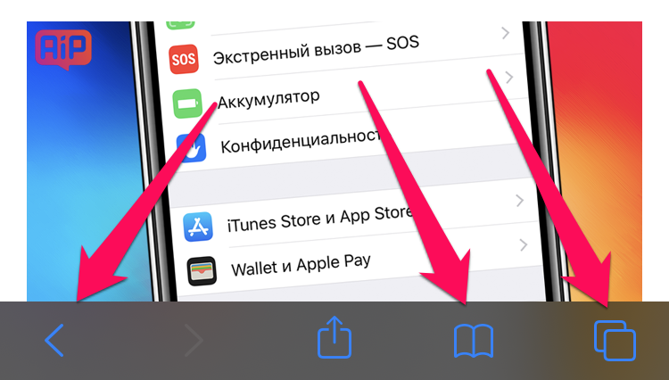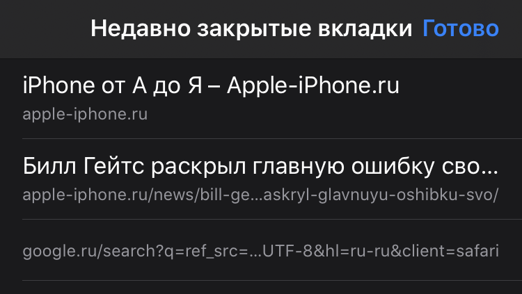 Длительно зажимать в Safari можно практически на всех кнопках. Зажатие на стрелочке «Вернуться» открывает историю переходов: