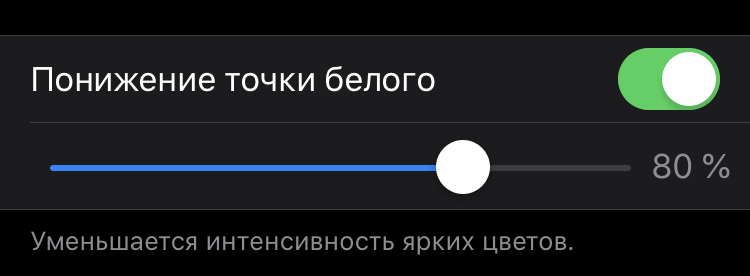 К счастью, действенное и удобное в использовании решение есть. Перейдите в «Настройки» — «Основные» → «Универсальный доступ» → «Адаптация дисплея» и включите функцию «Понижение точки белого». Дисплей вашего iPhone моментально станет менее ярким. Отрегулируйте функцию, установив наиболее подходящую яркость. Лучше всего это делать непосредственно вечером или ночью, когда вы обычно засыпаете.