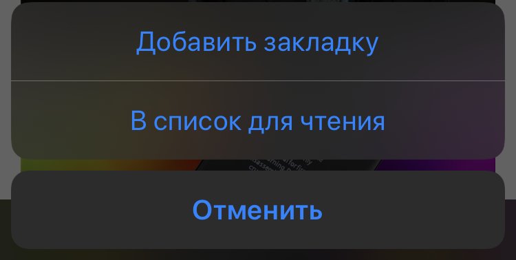 На кнопке «Закладки» — опции быстрого добавления страницы в закладки или список чтения:
