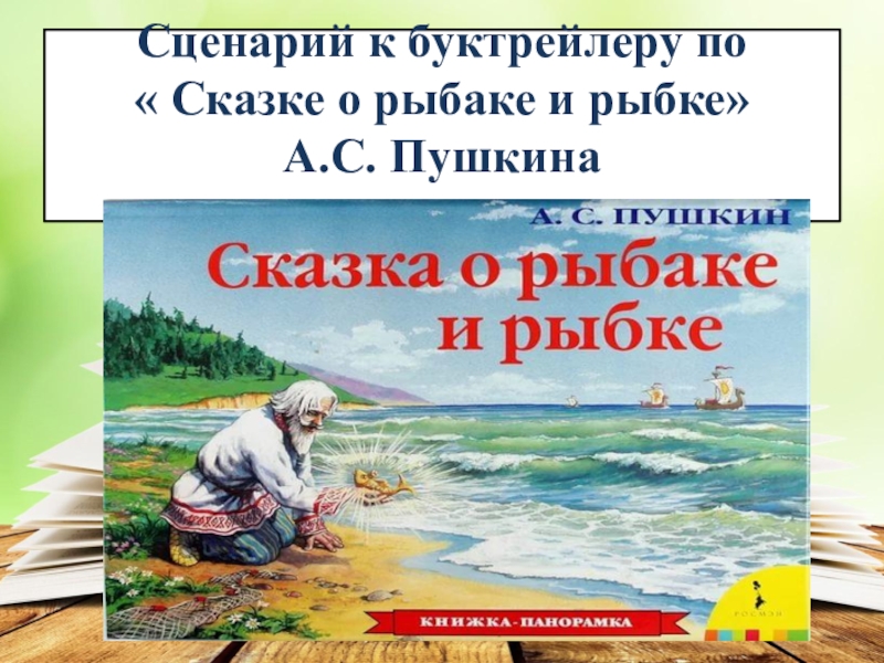 Слайд 12Сценарий к буктрейлеру по « Сказке о рыбаке и рыбке» А.С. Пушкина